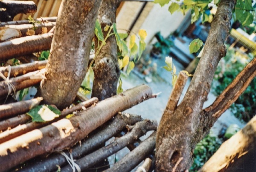 Wir begannen, ein Baumhaus zu errichten. Den Boden schnürten wir aus Ästen zusammen, wie bei einem Floss. Auch die Leiter bauten wir aus Ästen. Für die Wände organisierten wir uns Bretter aus Sperrholz. Von meinem Vater lieh ich eine Stichsäge aus und schnitt Fenster und eine Tür aus. Nach wenigen Tagen hatten wir ein halbes Haus mit halbem Dach, und so blieb es in den kommenden Jahren, bis die Wände aufgeweicht und schief waren und der Boden morsch.