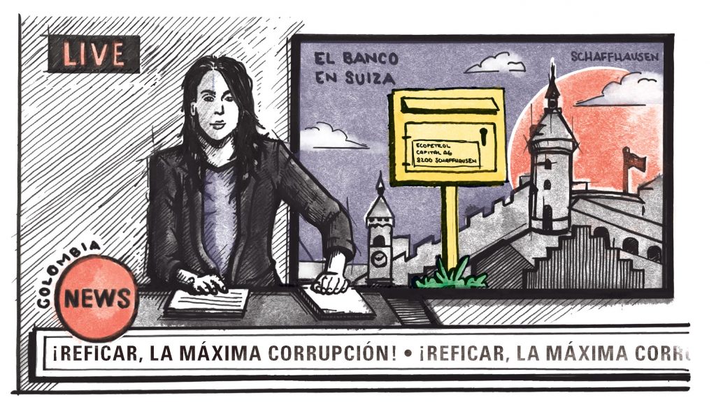 Wie ein Meteorit, der aus dem All stürzt, zoomt das Bild des kolumbianischen Staatsfernsehens via Google Earth zuerst auf Westeuropa, dann weiter auf die Schweiz und bleibt schliesslich in Schaffhausen stehen, an der Adresse eines Treuhandbüros. Hier, erklärt der südamerikanische Journalist in den Abendnachrichten vom 21. März 2017, «in dieser kleinen Schweizer Stadt mit wenig Bankenaktivität», sitze jene Firma, welche eine Schlüsselrolle in einem milliardenschweren Korruptionsfall spiele: die Ecopetrol Capital AG. Eine Gaunerbande sei das, ¡qué hampones!, kommentiert ein kolumbianischer Journalist die Recherche auf Twitter: «Der Schlüssel zum Raub von Reficar liegt in der Schweiz, in Schaffhausen.»