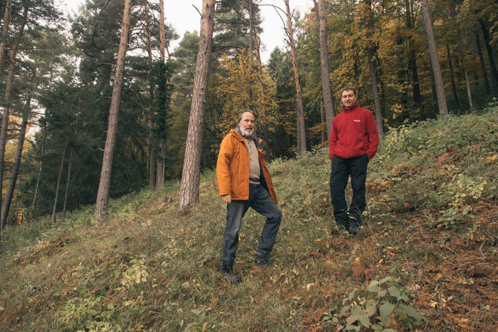 Im Naturschutz sei es wichtig, unsauber zu arbeiten, sagt Thomas Tanner. Der Merishauser Milchbauer streicht mit einer Hand über einen Streifen von hohem, vertrocknetem Gras auf der gemähten Wiese. So entstehe Lebensraum für Insekten. Ein paar Meter weiter hat Biologe Bernhard Egli junge Zitterpappeln entdeckt. «Der kleine Schillerfalter braucht sie als Nahrung», sagt er. «Würde man diese Fläche jetzt einfach sich selbst überlassen, wäre hier bald ein Buchenwald.» Die beiden Männer sind im Vorstand der Arbeitsgemeinschaft Kulturlandschaft Randen, kurz Kura, und wollen auf einer kleinen Exkursion in Richtung Hagen zeigen, was ihr Verein eigentlich so macht. Wir steigen wieder in Eglis alten VW, in dessen Mittelkonsole ein Apfel und eine Baumnuss liegen, und fahren weiter aufwärts zur Schloothalde, einem wohlriechenden Föhrenwald.