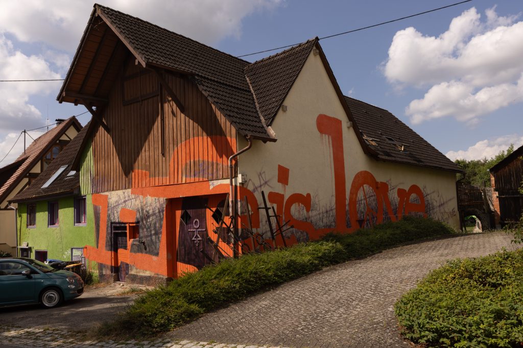 Unter all den ehrwürdigen Häuschen in Tengen mit ihren gepflegten, eingezäunten Vorgärtchen, den Solarpanels und Parkplätzen hebt sich ein altes Bauernhaus ab. «Life is Love» steht darauf – Leben ist Liebe. Selbst das Haus von «Psyland 25» ist tätowiert.