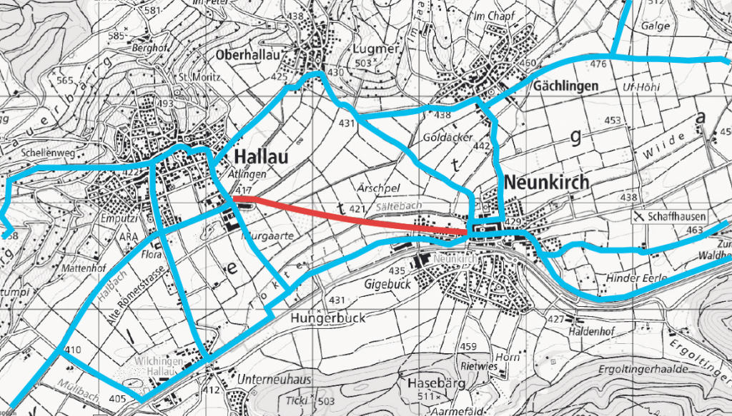 Das Velo ist seit Generationen für die meisten Schüler:innen auf dem Land tägliches Fortbewegungsmittel. Sichere und zusammenhängende Velowege mit einer intuitiven und vor allem direkten Verkehrsführung sind wichtig, um die Schule zu erreichen. Für die Kids aus Hallau wird diese nun wohl nicht optimal gewährleistet sein, sondern nur noch knapp den Vorgaben entsprechen, sollte der direkte Veloweg nicht ausgebaut werden. Wenn sie sich an die Radwege halten, müssen Schüler:innen aus Hallau und Trasadingen dann nämlich einen Umweg fahren.